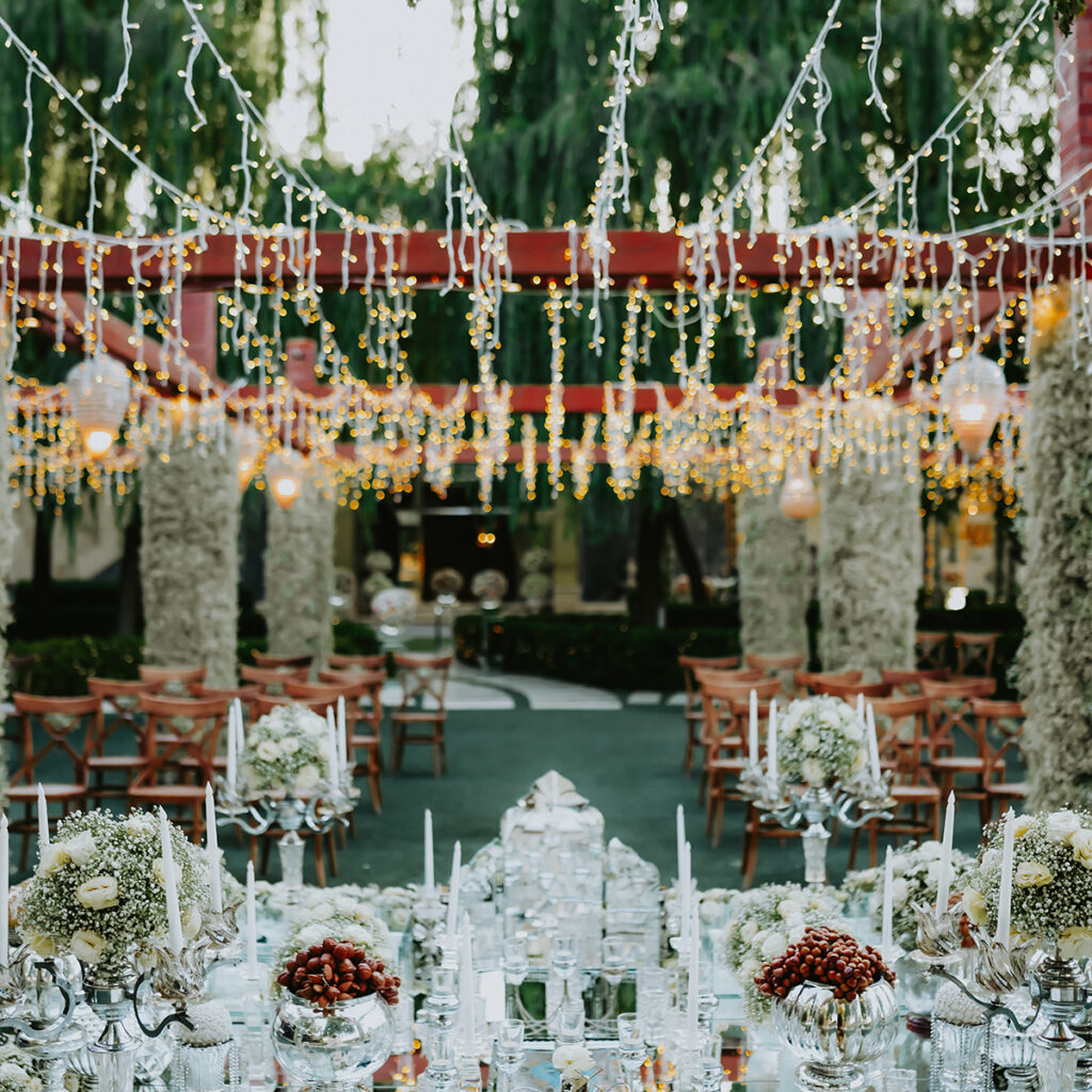طراحی سفره عقد در فضای کلاسیک عمارت ولنجک با لوسترهای بزرگ و نورپردازی حرفهای، جلوهای کاملاً اشرافی ایجاد میکند. همچنین وجود فضای باز در چنین عمارتهایی به شما این فرصت را میدهد که بخشی از مراسم یا عکاسی را در محیطی طبیعی برگزار کنید.