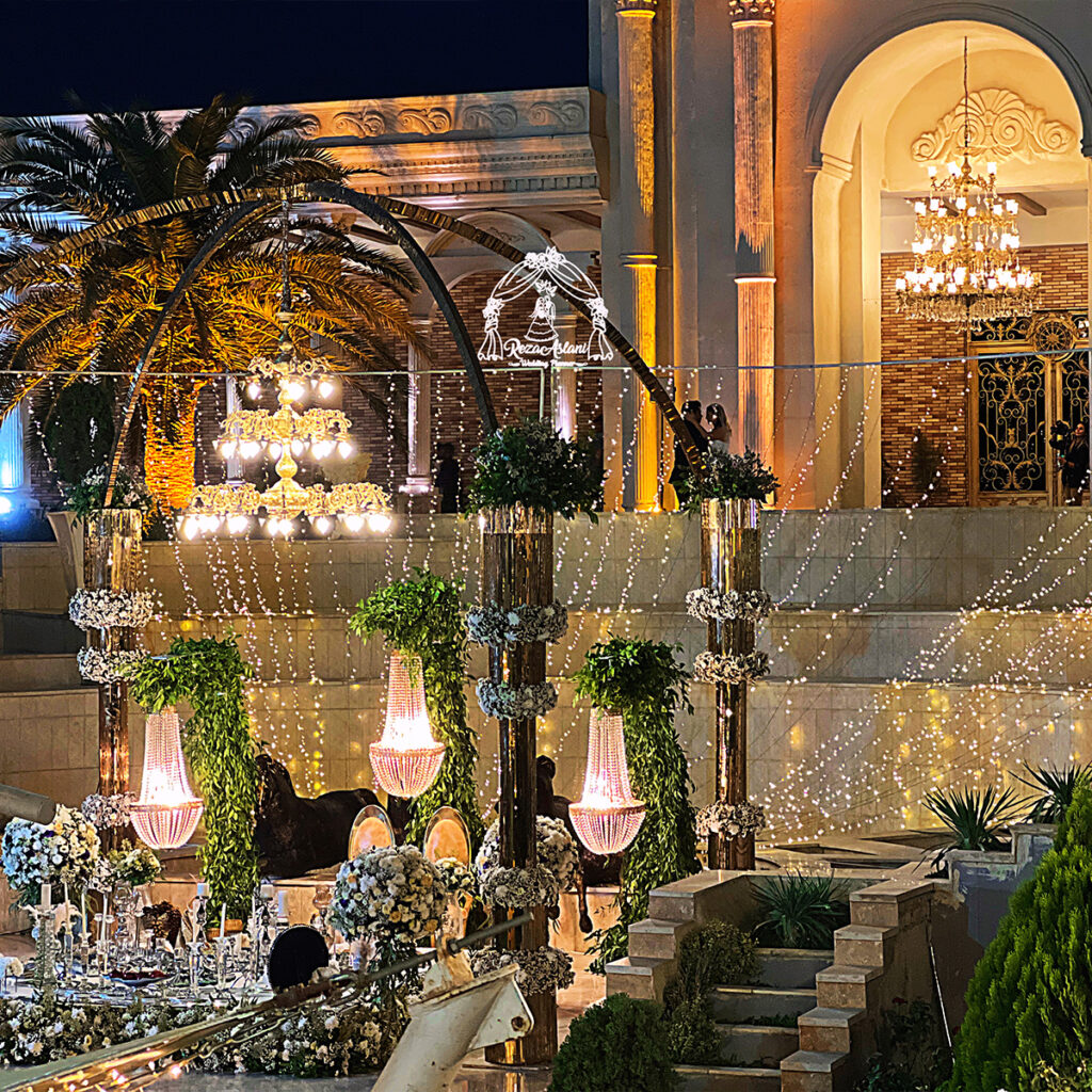در صورتی که مراسم در یک باغ تالار برگزار شود، ترکیب نور طبیعی غروب آفتاب با نورپردازی ملایم شبانه فضایی رمانتیک ایجاد میکند. در سالنهای سرپوشیده و عمارتهای مجلل نیز نورهای موضعی و لوسترهای بزرگ میتوانند جلوهای سینمایی به مراسم بدهند.