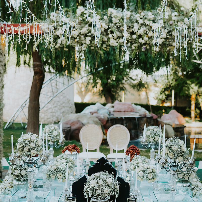 اگر مراسم در یک باغ تالار برگزار شود، میتوان از المانهای طبیعی مانند گلهای فصلی و چیدمان بوهو استفاده کرد. در مقابل، در فضایی مانند عمارت ولنجک طراحی کلاسیک با جزئیات طلایی و کریستالی جلوه بیشتری خواهد داشت.