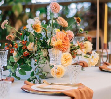 دکور: استفاده از یک نوع گل خاص، مانند ارکیده، در تمام بخشهای باغ تالار – از دسته گل عروس تا مرکز میزها – برای ایجاد یک امضای بصری قوی.